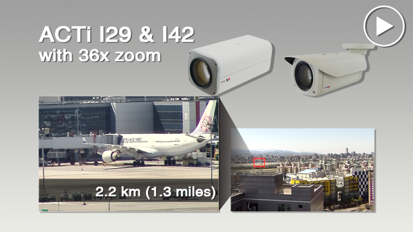 ACTi vừa giới thiệu dòng camera Zoom Box I29 và Zoom Bullet I42: sử dụng ống kính zoom 36x có khả năng phóng to vật thể từ khoảng cách rất xa, và tự động lấy nét giúp người xem dễ dàng nhìn rõ chi tiết khu vực cần quan sát.